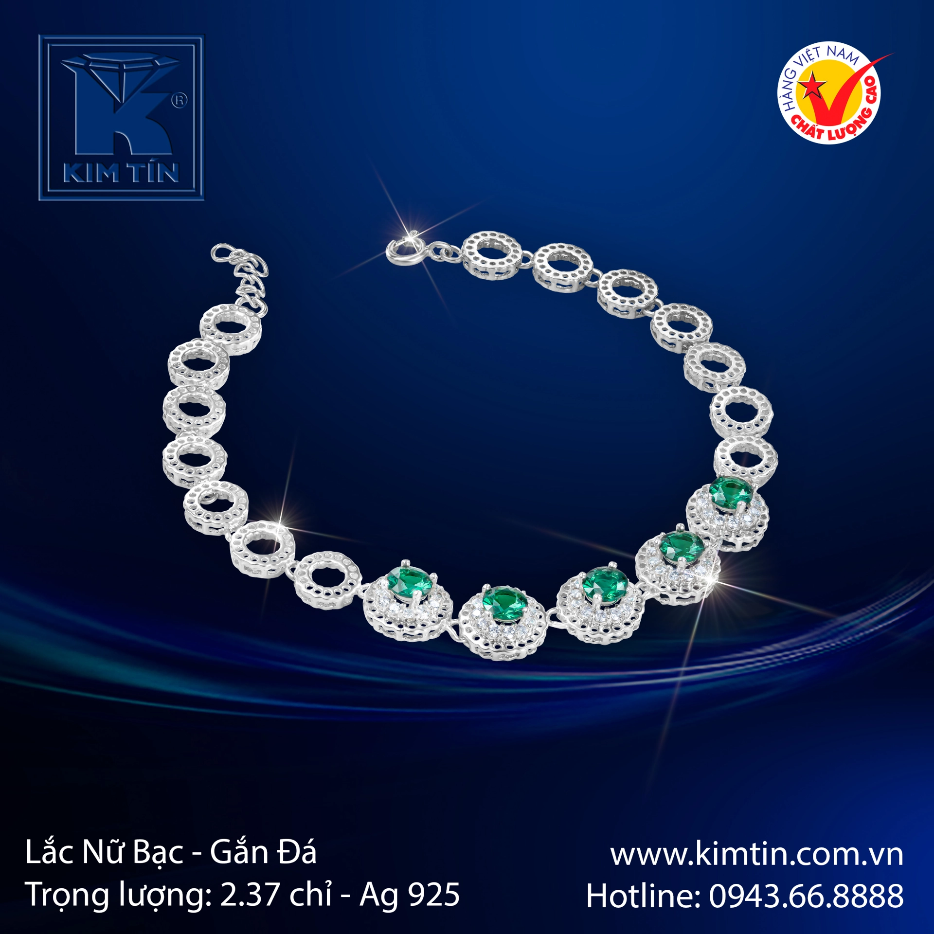 💎 Chất Liệu & Đẳng Cấp: Chế tác từ Bạc 925 cao cấp, chiếc lắc tay không chỉ có độ bền và độ sáng bóng vượt trội mà còn thể hiện gu thẩm mỹ đỉnh cao. Màu xanh lục bảo quý phái kết hợp với ánh bạc lấp lánh làm bừng sáng làn da, là món trang sức không thể thiếu để nâng tầm mọi bộ trang phục dạ tiệc hay sự kiện quan trọng.