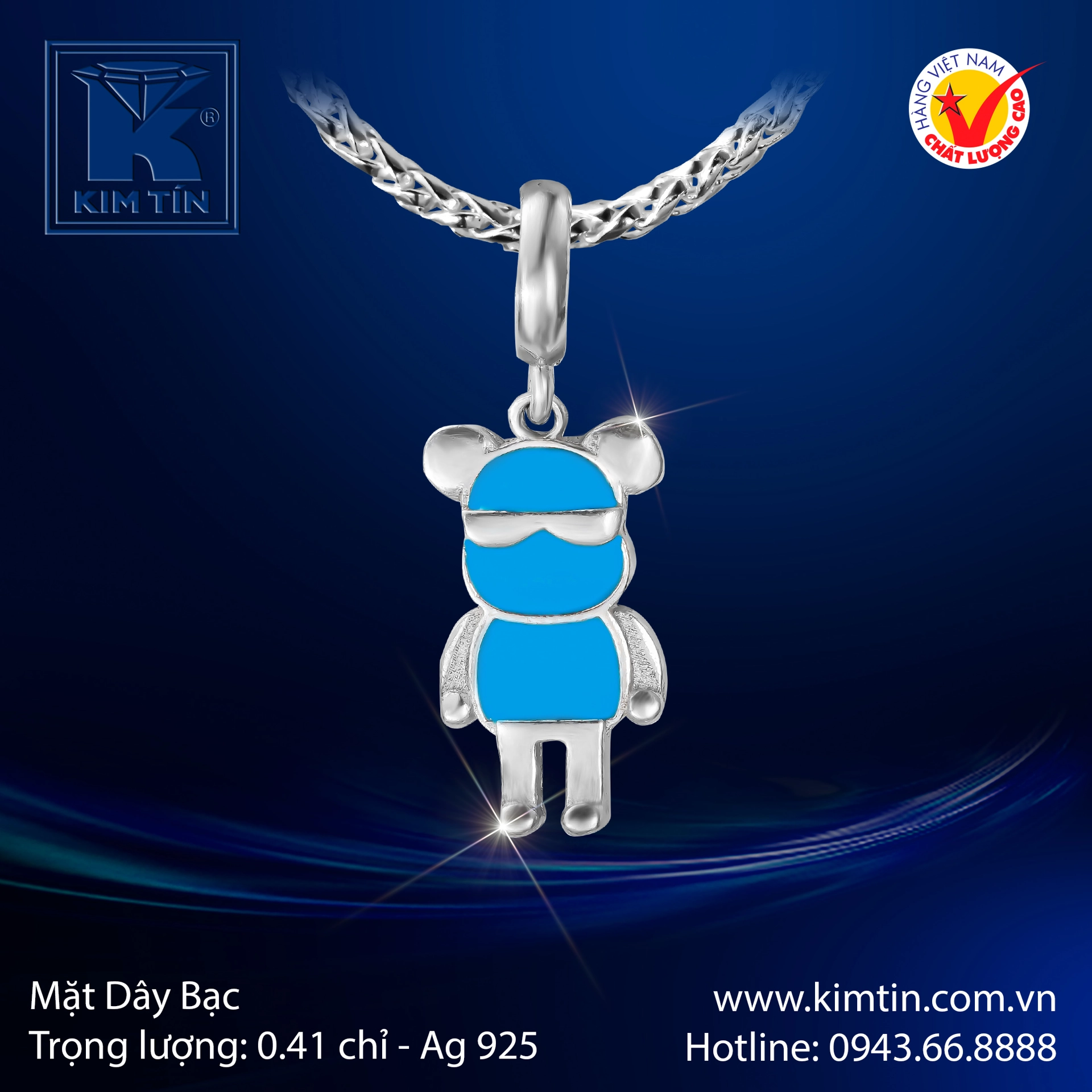 Mặt dây bạc cho bé được thiết kế hình chú gấu ngộ nghĩnh màu xanh dương, nổi bật với chiếc kính mát sành điệu. Đây là món phụ kiện không chỉ đáng yêu mà còn mang lại cho bé một phong cách riêng, vừa tinh nghịch vừa cá tính.