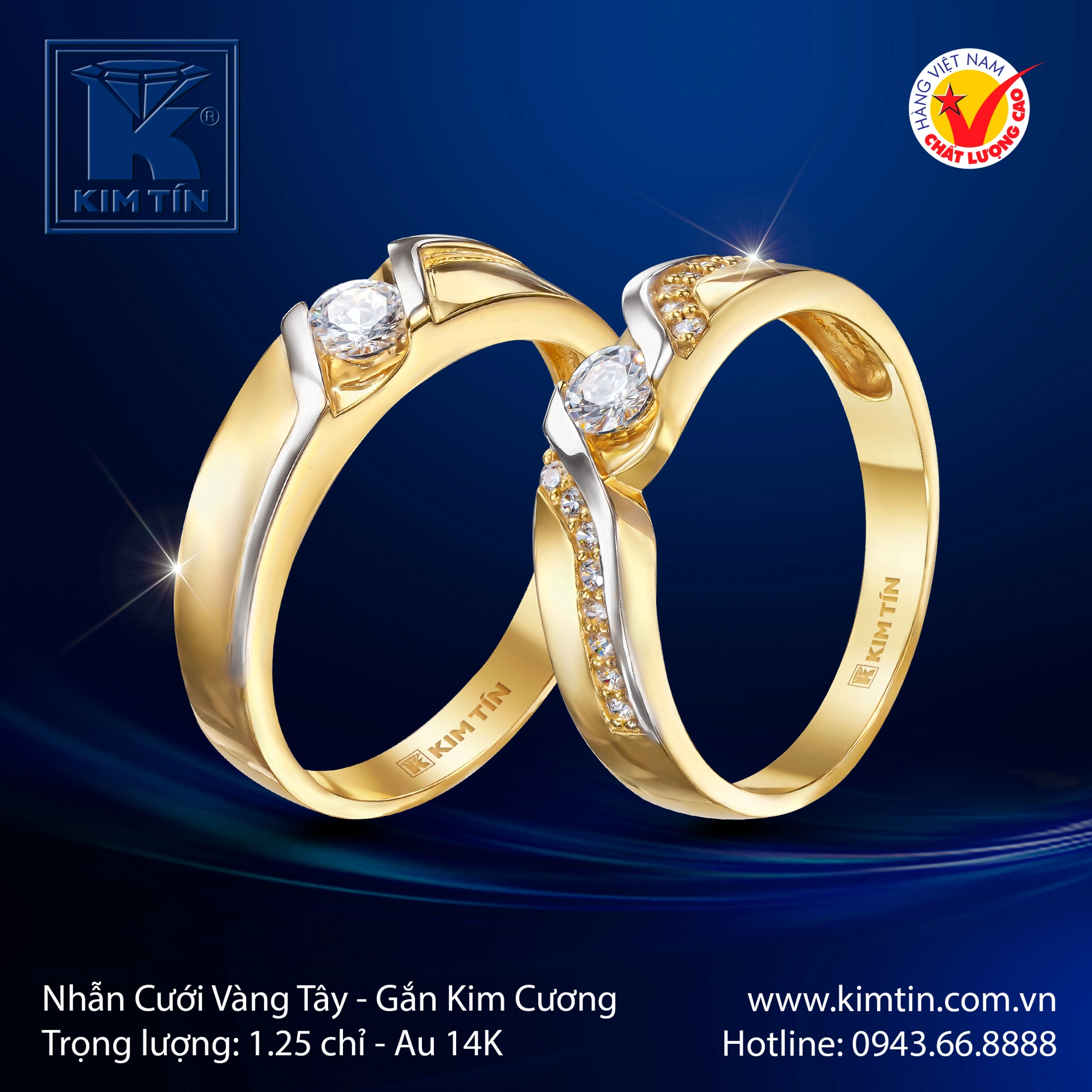 Cặp nhẫn cưới vàng tây 14K mang thiết kế hiện đại, tinh tế, là biểu tượng hoàn hảo cho tình yêu vĩnh cửu. Sự kết hợp giữa sắc vàng ấm áp và ánh kim lấp lánh tạo nên diện mạo thanh lịch, phù hợp với cả nam và nữ.