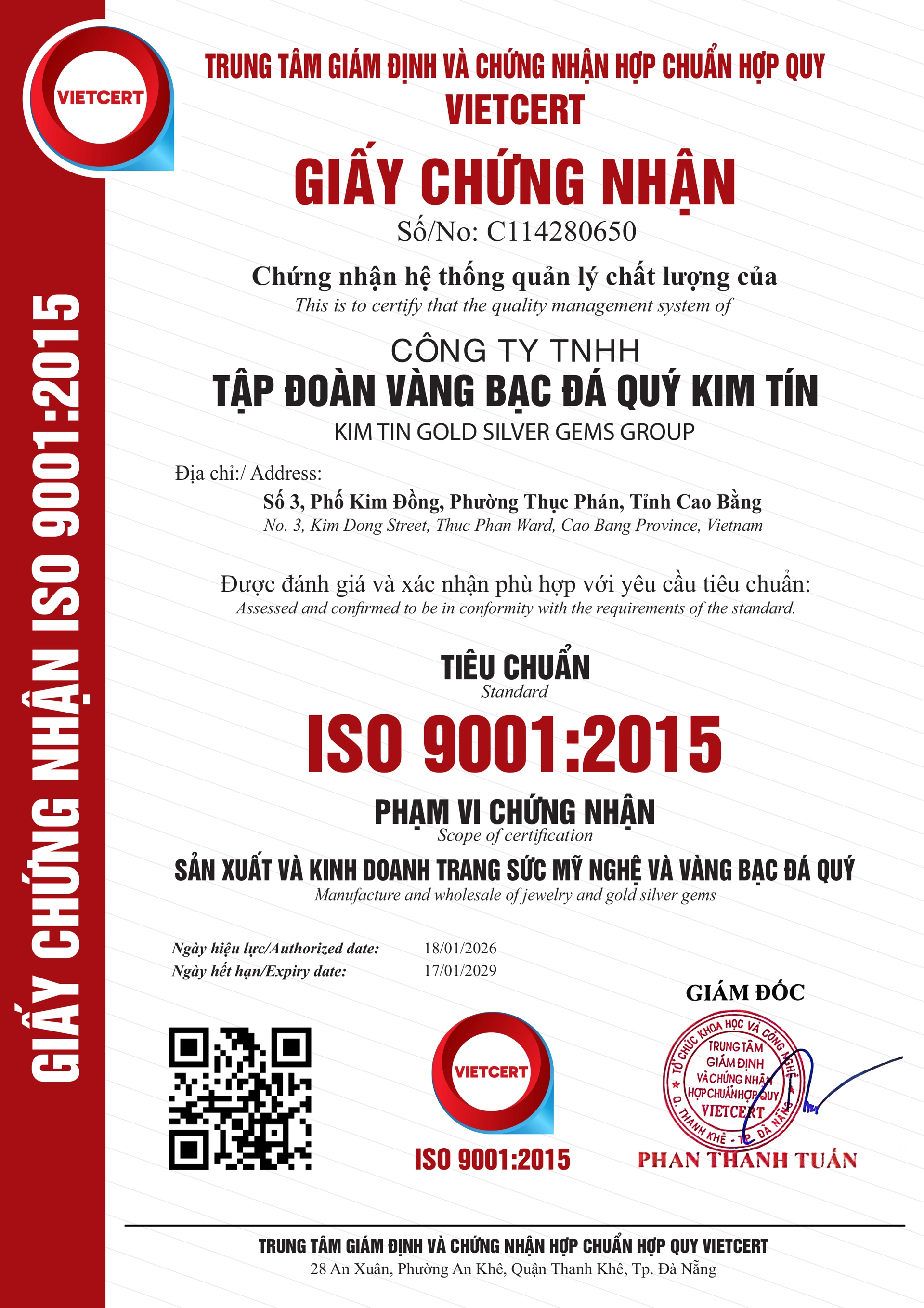 TRANG SỨC Chất liệu bằng Vàng Tinh khiết Quốc tế Vàng Rồng Kim Tín 999.9 | 99.9 (24K) | 17347 | 17793 | |