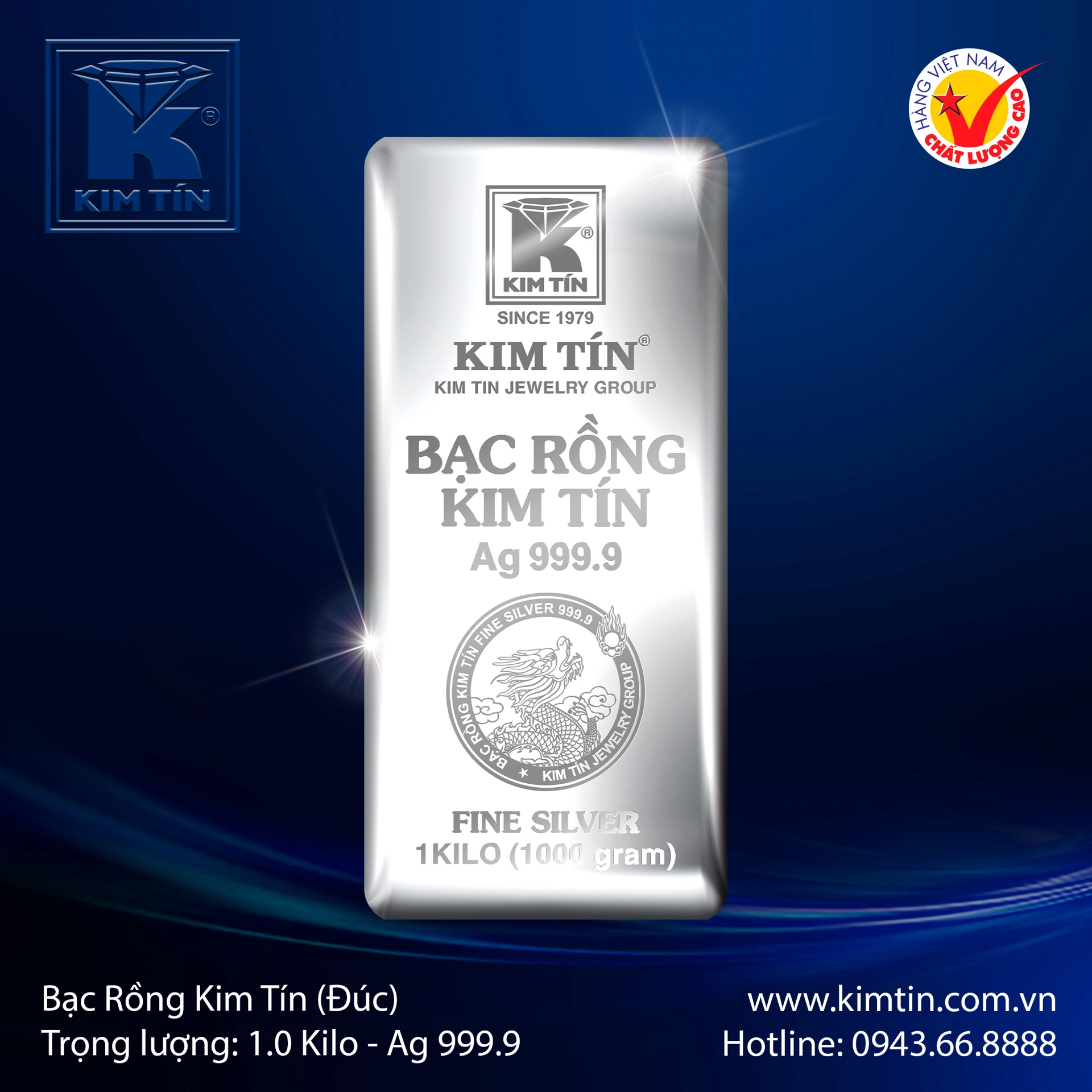 Thiết kế cao cấp: Dạng thỏi bạc lớn 1 kilogram, khắc nổi hình Rồng uốn lượn giữa mây, biểu tượng cho quyền lực, tài lộc và thịnh vượng.