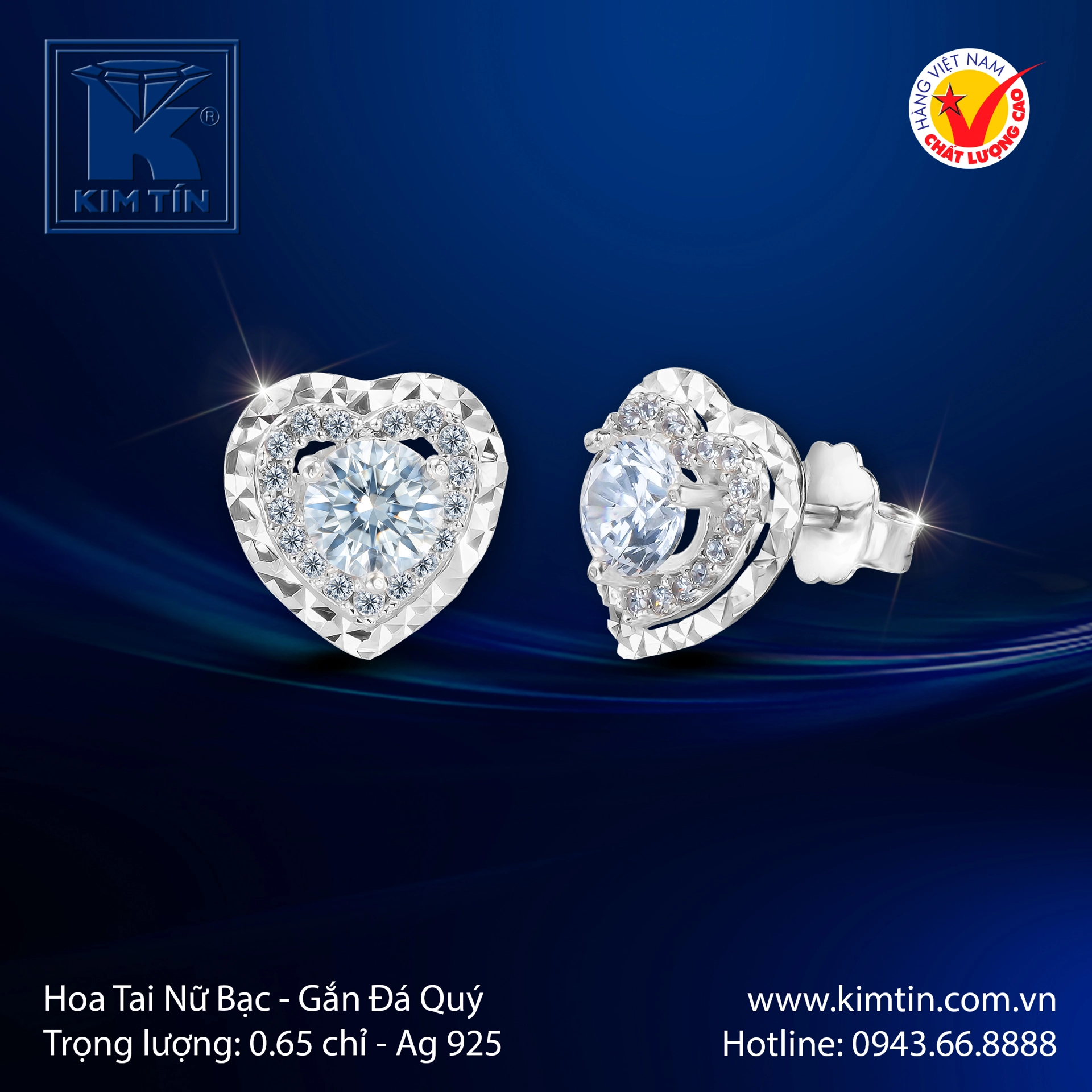Đắm chìm trong vẻ đẹp lãng mạn và sự sang trọng với đôi Hoa Tai Nữ Bạc "Gần Đá Quý" hình trái tim từ Kim Tín. Thiết kế trái tim đôi độc đáo, với viên đá chủ lấp lánh như kim cương được bao bọc bởi vòng đá nhỏ tinh xảo, là biểu tượng hoàn hảo cho tình yêu vĩnh cửu, sự tinh tế và phong thái quý phái, mang đến cho quý cô một vẻ đẹp đầy cuốn hút và ý nghĩa. ❤️💎
