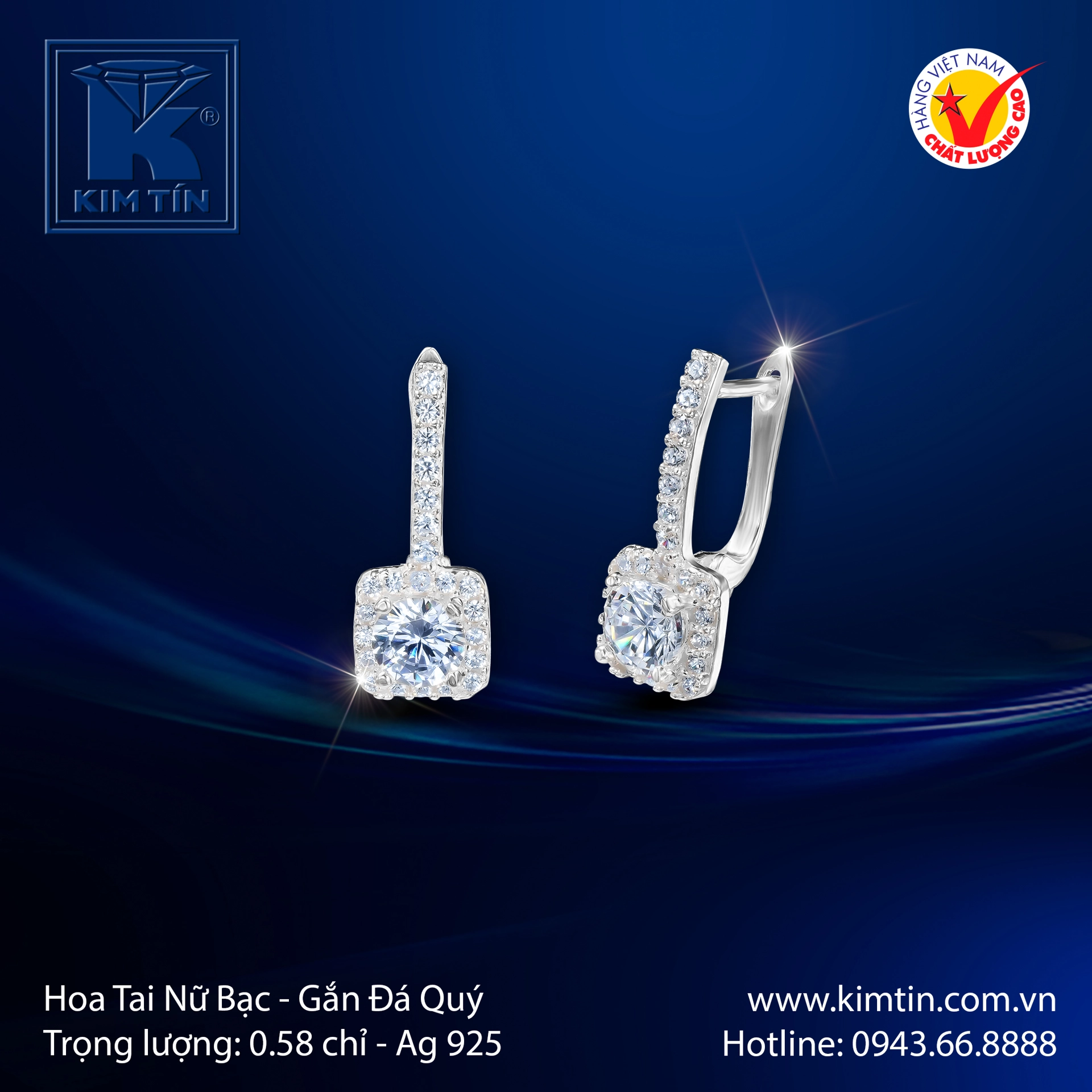 ✨ Thiết Kế Kiêu Hãnh: Tâm điểm là viên đá quý được cắt mài tinh xảo theo hình dáng vuông vức, kiêu hãnh được bao bọc bởi khung bạc Bạc 925 chắc chắn và hàng đá tấm lấp lánh. Dáng treo thả nhẹ nhàng cùng móc cài ôm tai, tạo chuyển động mềm mại và ánh sáng rực rỡ, thu hút mọi ánh nhìn theo từng cử chỉ.