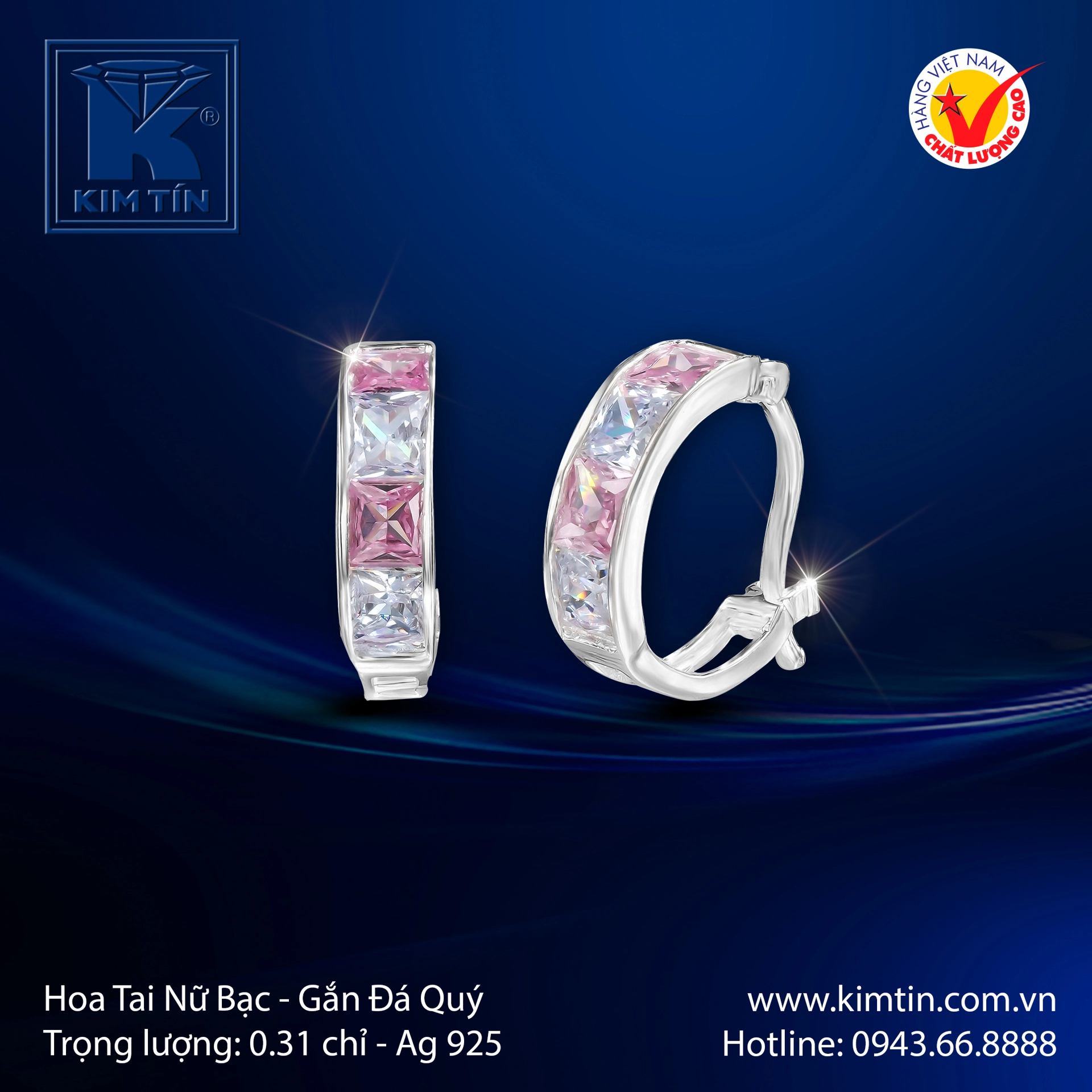 ✨ Thiết Kế Hiện Đại: Sản phẩm nổi bật với các viên đá quý vuông (Princess Cut) được gắn liền mạch theo dạng hàng ngang trên thân hoa tai, tạo nên một dải ánh sáng rực rỡ và có chiều sâu. Sự phối hợp giữa đá trắng lấp lánh và đá hồng ngọt ngào mang đến một vẻ ngoài tươi mới, cá tính nhưng vẫn giữ được sự sang trọng. Thiết kế khoen tròn ôm tai tạo sự thanh lịch tuyệt đối.