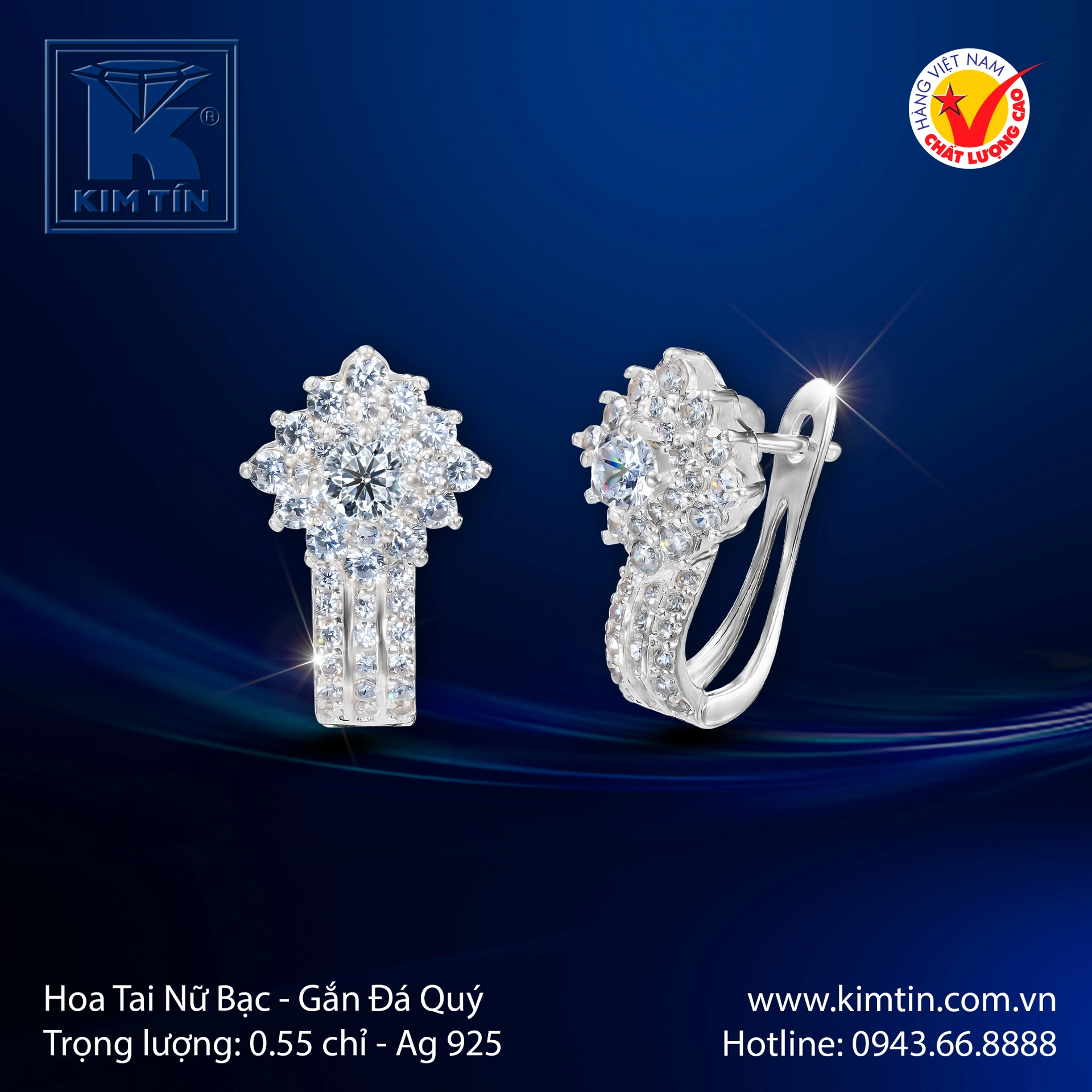 Đôi hoa tai bạc này là sự kết hợp hoàn hảo giữa thiết kế tinh xảo và ánh kim cương nhân tạo lộng lẫy, mang đến cho quý cô một vẻ ngoài kiêu sa và cuốn hút.