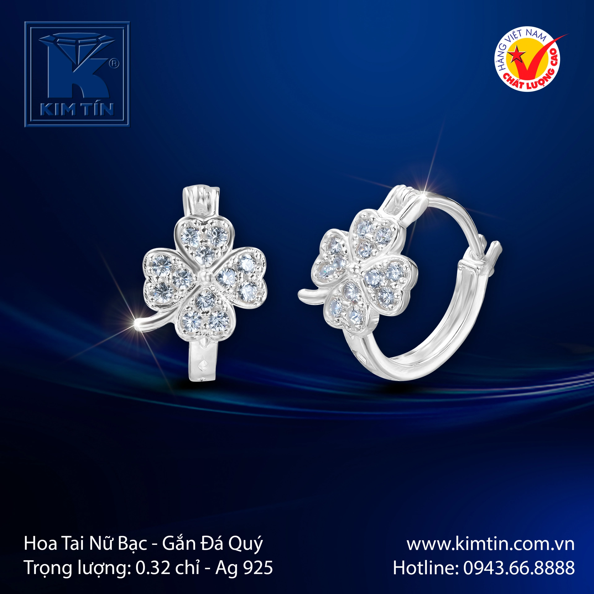 ✨ Thiết Kế Tinh Tế: Mỗi chiếc hoa tai được chế tác tỉ mỉ theo hình ảnh cỏ bốn lá – biểu tượng may mắn kinh điển, với bốn cánh được đính kết hoàn toàn bằng đá quý lấp lánh. Sự kết hợp giữa chất liệu Bạc 925 sáng bóng và ánh kim cương nhân tạo rực rỡ tạo nên một tác phẩm trang sức vừa thanh lịch, vừa thu hút mọi ánh nhìn.