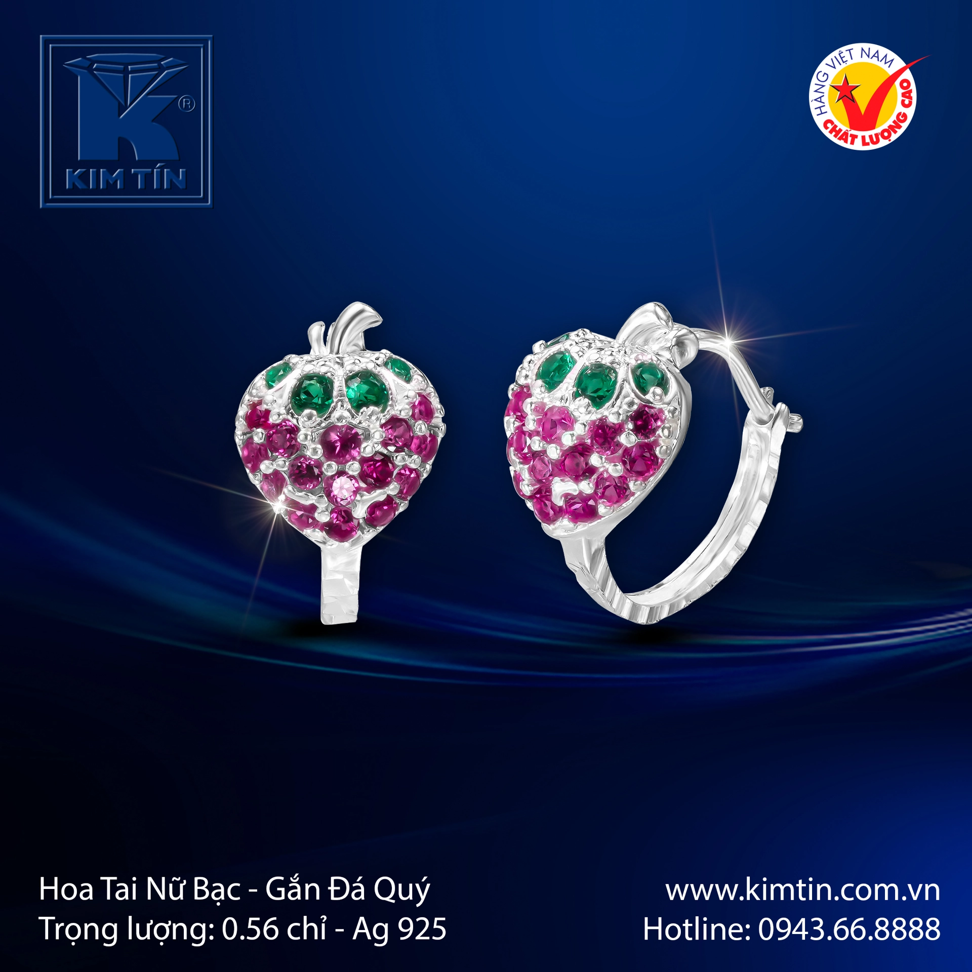💖 Thiết Kế Đáng Yêu: Lấy cảm hứng từ vẻ đẹp rực rỡ và ngọt ngào của quả dâu tây, đôi hoa tai được chế tác sống động với sự kết hợp hài hòa của các viên đá quý màu hồng ruby và xanh emerald. Sự phối màu táo bạo và tinh tế này tạo nên một điểm nhấn thời trang cực kỳ nổi bật và thu hút.