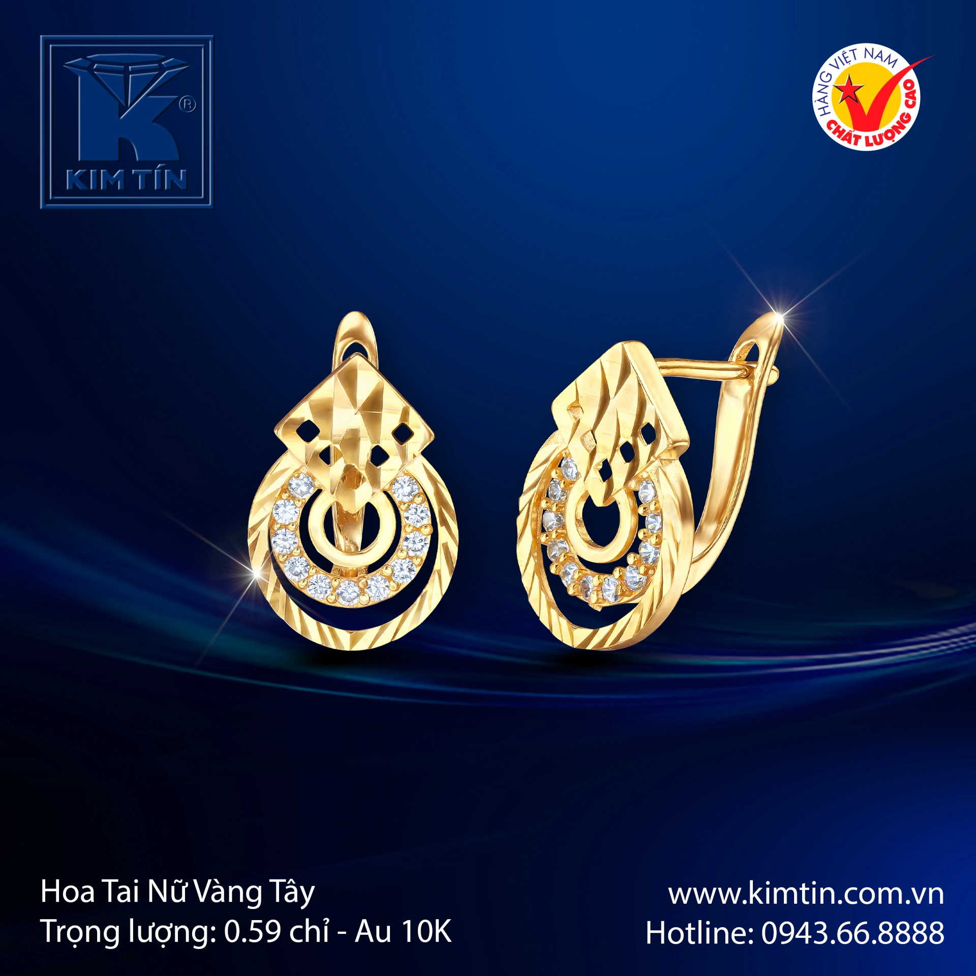 "Tỏa sáng vẻ đẹp hiện đại và quyến rũ với Hoa Tai Nữ Vàng Tây 10K từ Kim Tín! ✨