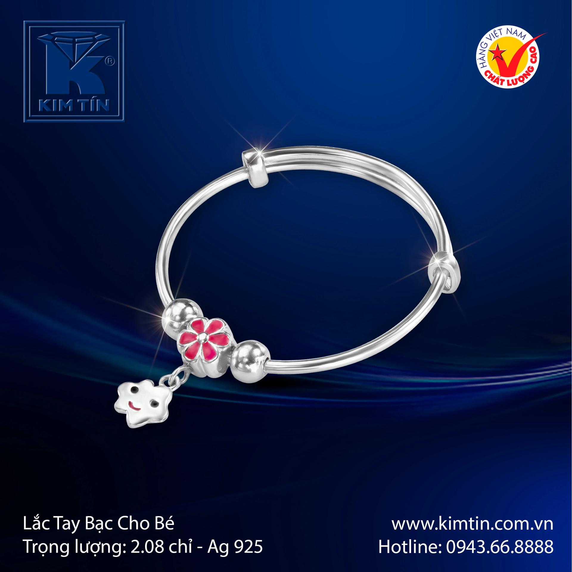 Chào mừng bạn đến với thế giới của những món trang sức diệu kỳ, nơi Kim Tín tự hào giới thiệu mẫu lắc tay bạc cao cấp dành riêng cho các thiên thần nhỏ. Đây không chỉ là một món trang sức, mà còn là biểu tượng của tình yêu và sự bảo bọc mà cha mẹ dành cho con.