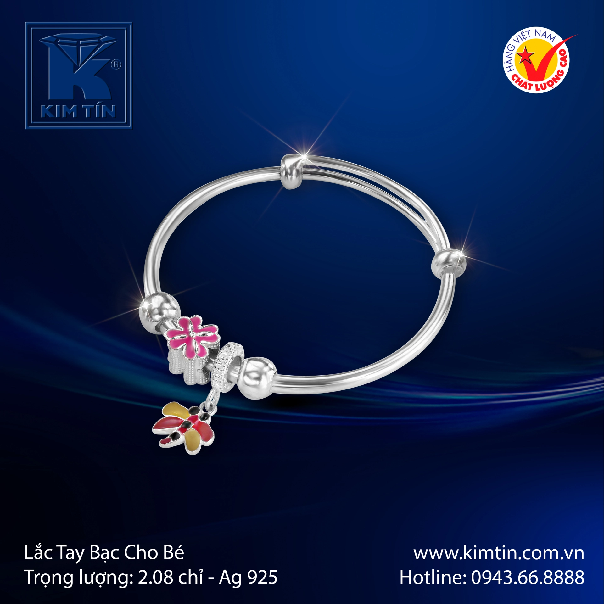 Chào mừng bạn đến với thế giới của những món trang sức diệu kỳ, nơi Kim Tín tự hào giới thiệu mẫu lắc tay bạc cao cấp dành riêng cho các thiên thần nhỏ. Đây không chỉ là một món trang sức, mà còn là biểu tượng của tình yêu và sự bảo bọc mà cha mẹ dành cho con.