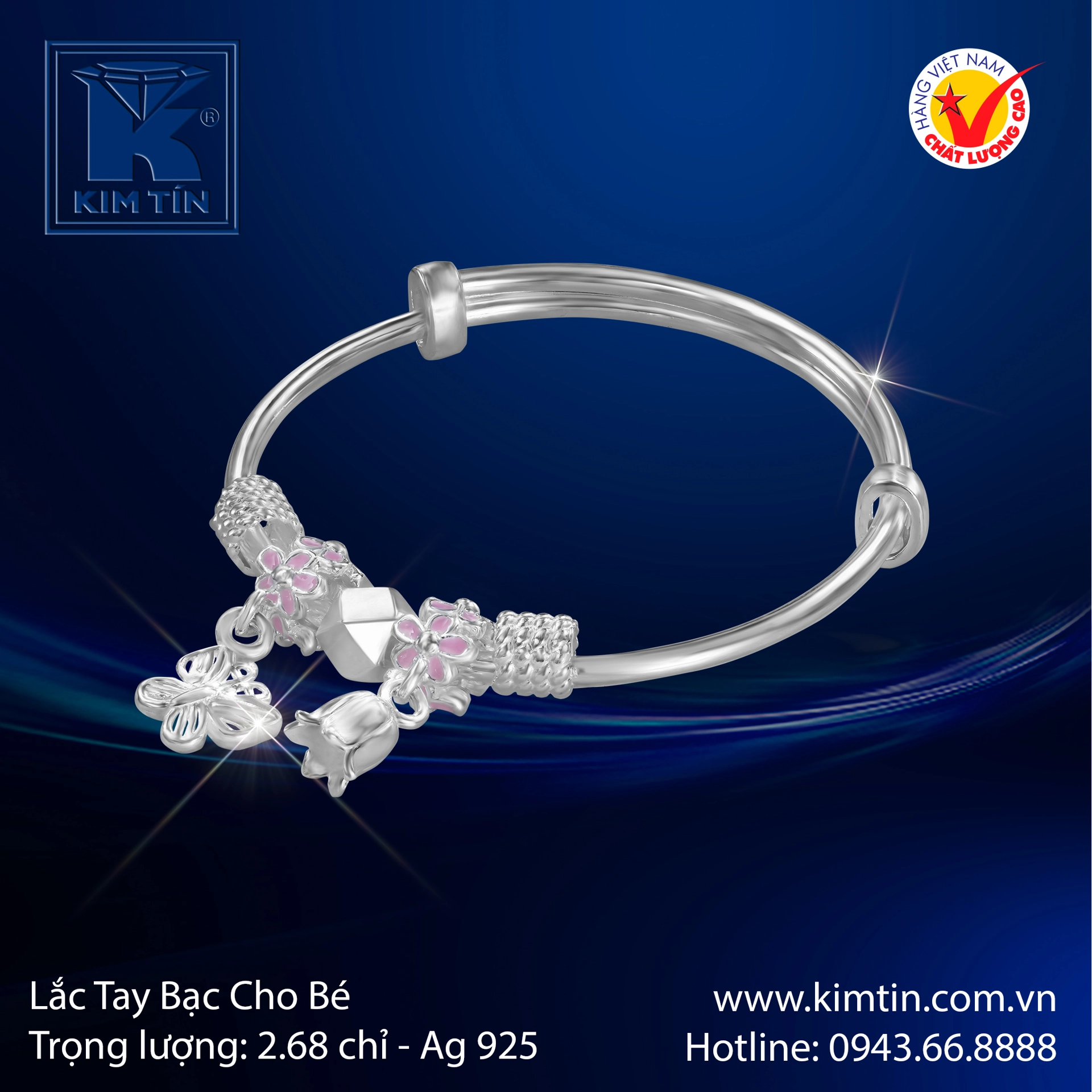 Chào mừng quý vị đến với thế giới của sự tinh tế và đẳng cấp dành riêng cho những thiên thần nhỏ. Tại Kim Tín, chúng tôi tự hào giới thiệu mẫu vòng tay bạc nguyên khối AG 925 cao cấp – một kiệt tác trang sức không chỉ là món quà mà còn là biểu tượng của tình yêu thương vĩnh cửu và sự bảo vệ diệu kỳ dành cho bé yêu của bạn. 💖