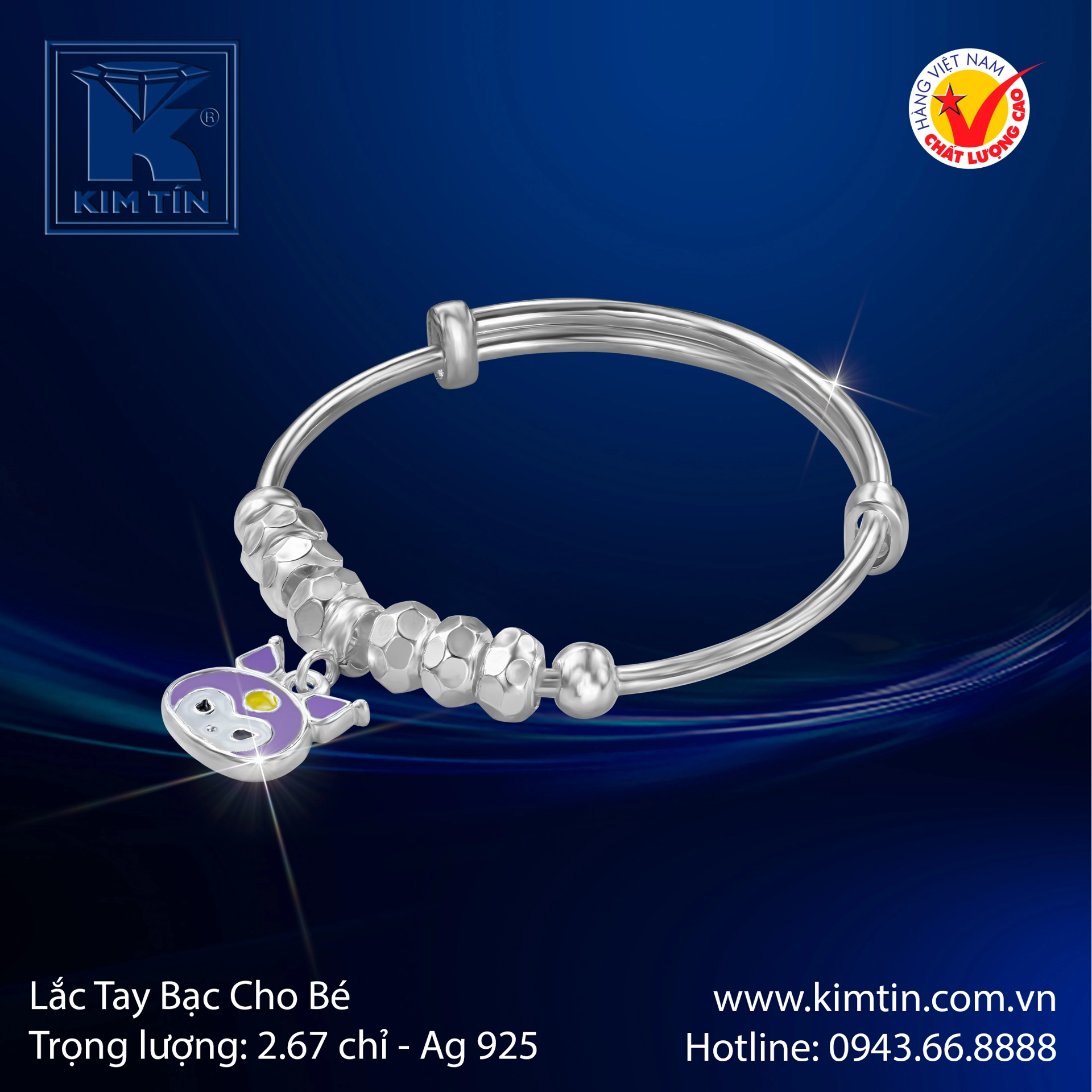 Chào mừng quý vị đến với thế giới của sự tinh tế và đẳng cấp dành riêng cho những thiên thần nhỏ. Tại Kim Tín, chúng tôi tự hào giới thiệu mẫu vòng tay bạc nguyên khối AG 925 cao cấp – một kiệt tác trang sức không chỉ là món quà mà còn là biểu tượng của tình yêu thương vĩnh cửu và sự bảo vệ diệu kỳ dành cho bé yêu của bạn. 💖