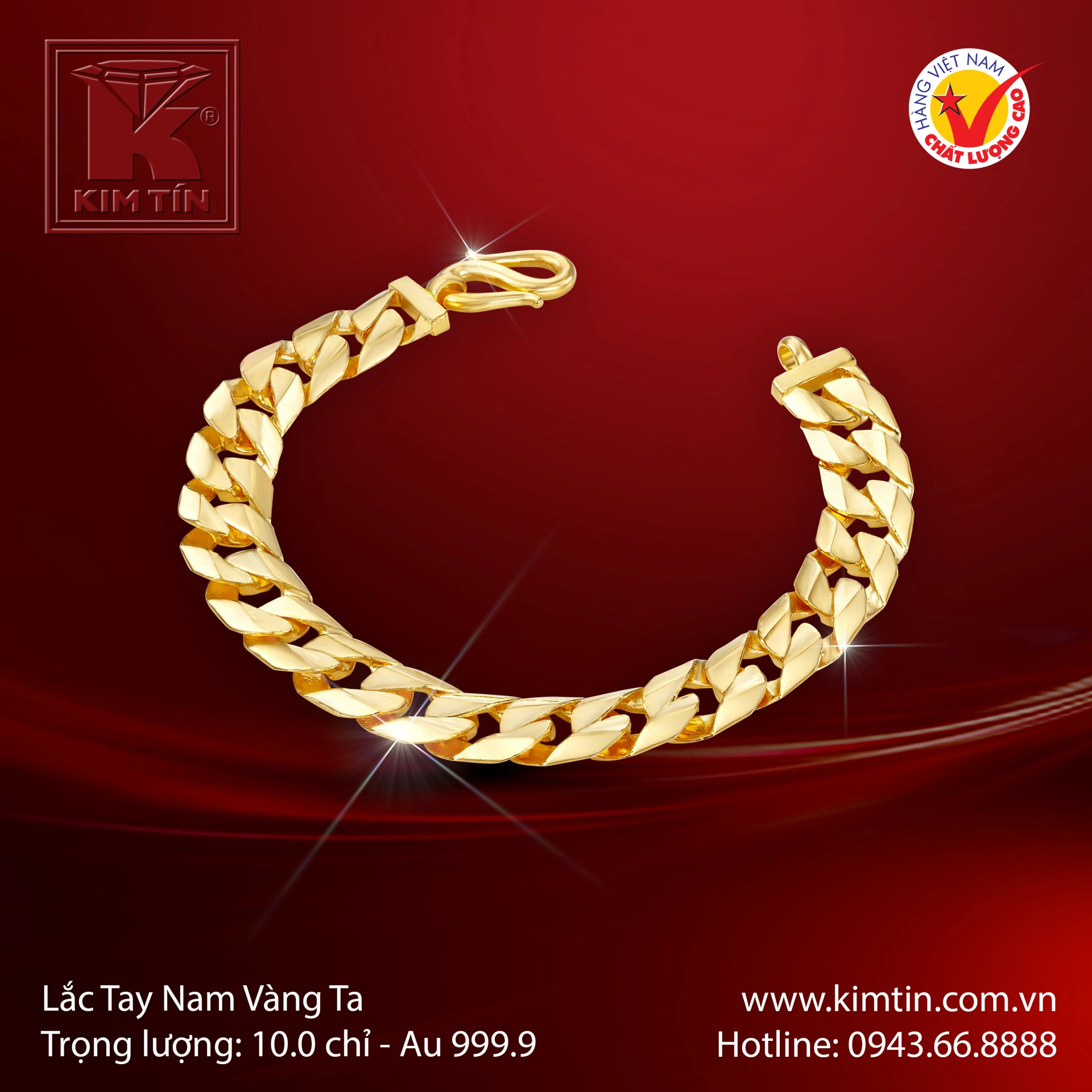 Mang vẻ đẹp uy mãnh, dứt khoát và sự khẳng định giá trị tuyệt đối, chiếc lắc tay Vàng Ta 24K này là biểu tượng không thể thiếu cho phong thái lãnh đạo và sự thành công của quý ông.