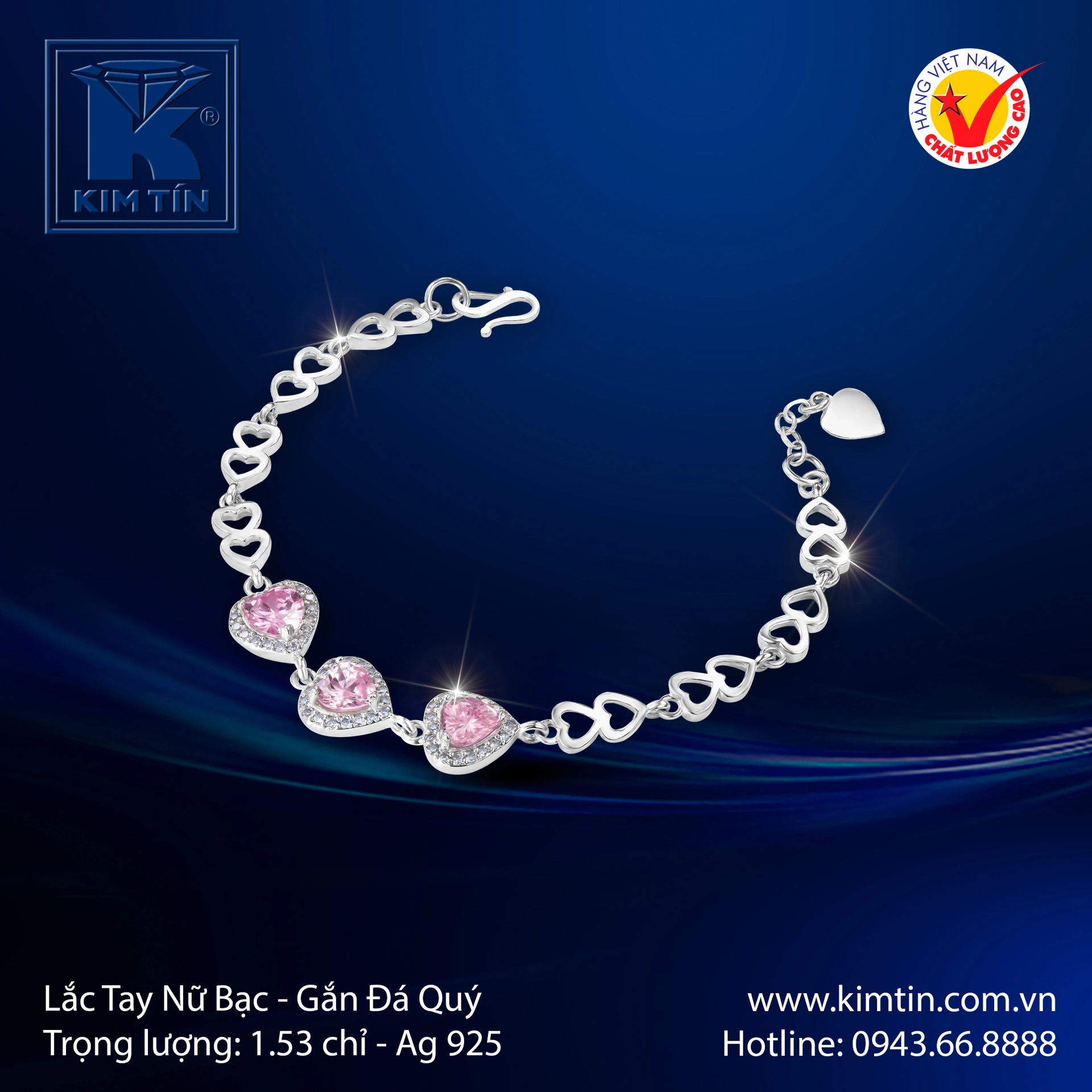Chào mừng quý cô đến với thế giới trang sức tinh tế của Kim Tín, nơi chúng tôi tự hào giới thiệu mẫu lắc tay bạc cao cấp đính đá trái tim màu hồng, dành riêng cho phái đẹp. Đây không chỉ là một món trang sức, mà còn là điểm nhấn hoàn hảo, tôn vinh nét đẹp sang trọng và quý phái của bạn.