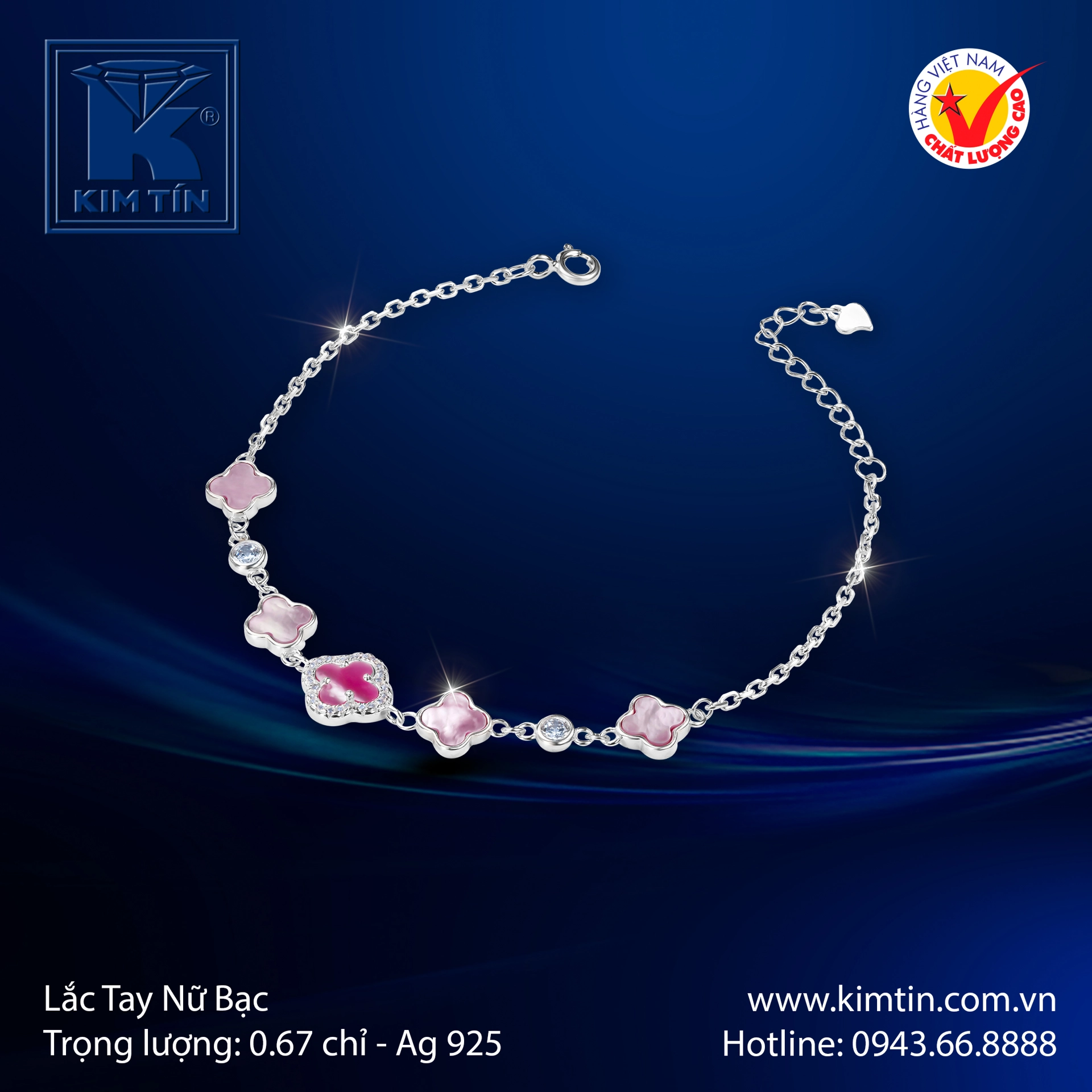 Lắc Tay Nữ Bạc Kim Tín - Nét Duyên Dáng Cùng Sắc Hồng Ngọt Ngào! 🌸💖✨