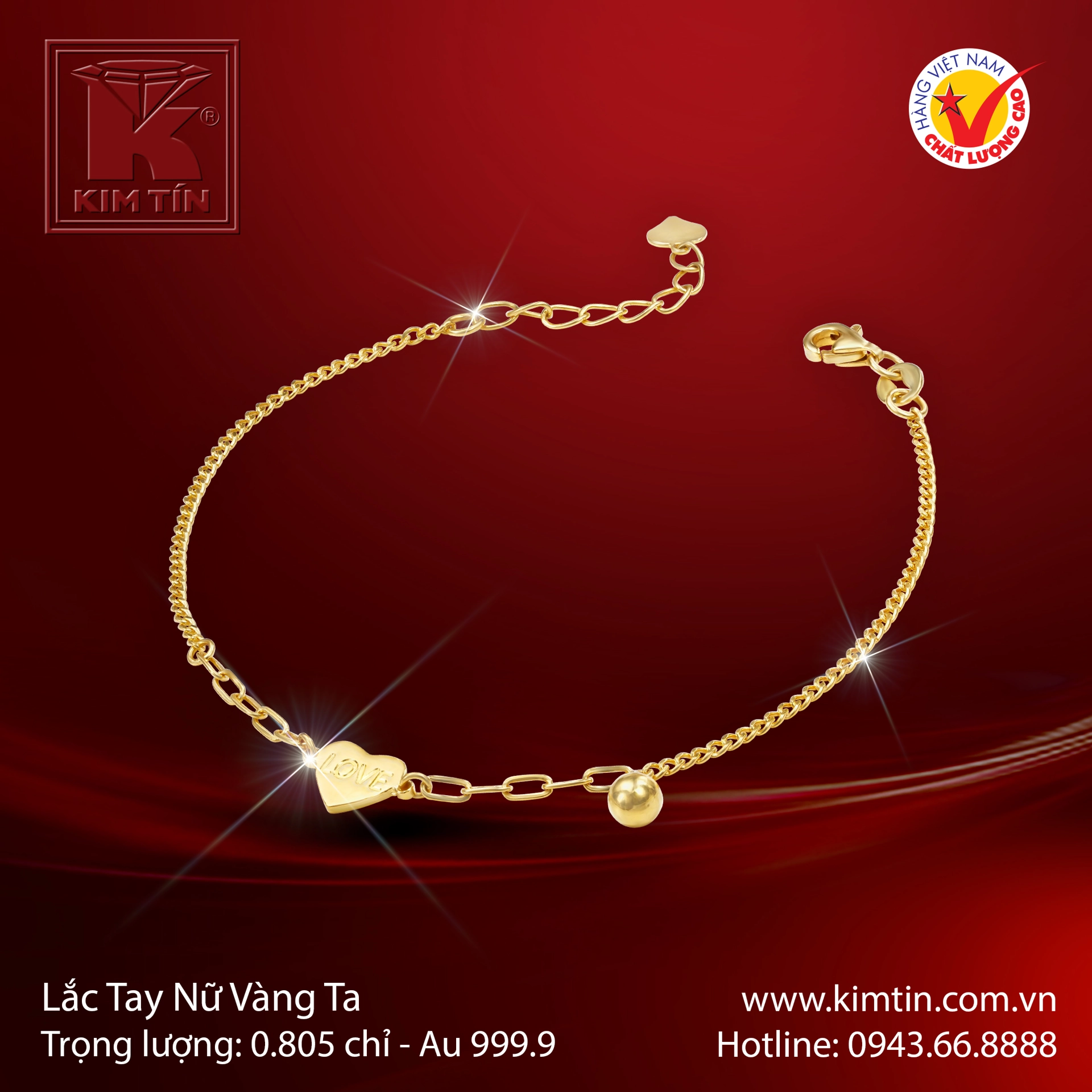 Mang vẻ đẹp tinh tế, hiện đại và ý nghĩa lãng mạn sâu sắc, chiếc lắc tay Vàng Ta 24K này là món trang sức không thể thiếu để tôn vinh tình yêu và phong thái thanh lịch của quý cô.