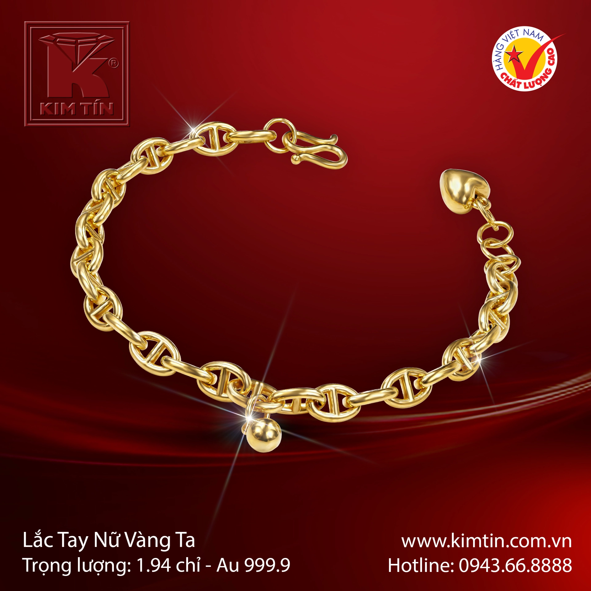 Lắc tay được chế tác từ Vàng Ta 24K nguyên chất, đạt độ tinh khiết tối đa Au 999.9. Sắc vàng kim đậm đà, lộng lẫy, khẳng định giá trị đầu tư cao cấp và sự quý phái. Với trọng lượng tham khảo 1.94 chỉ, lắc tay mang lại cảm giác đầm tay, chắc chắn, là tài sản giá trị.