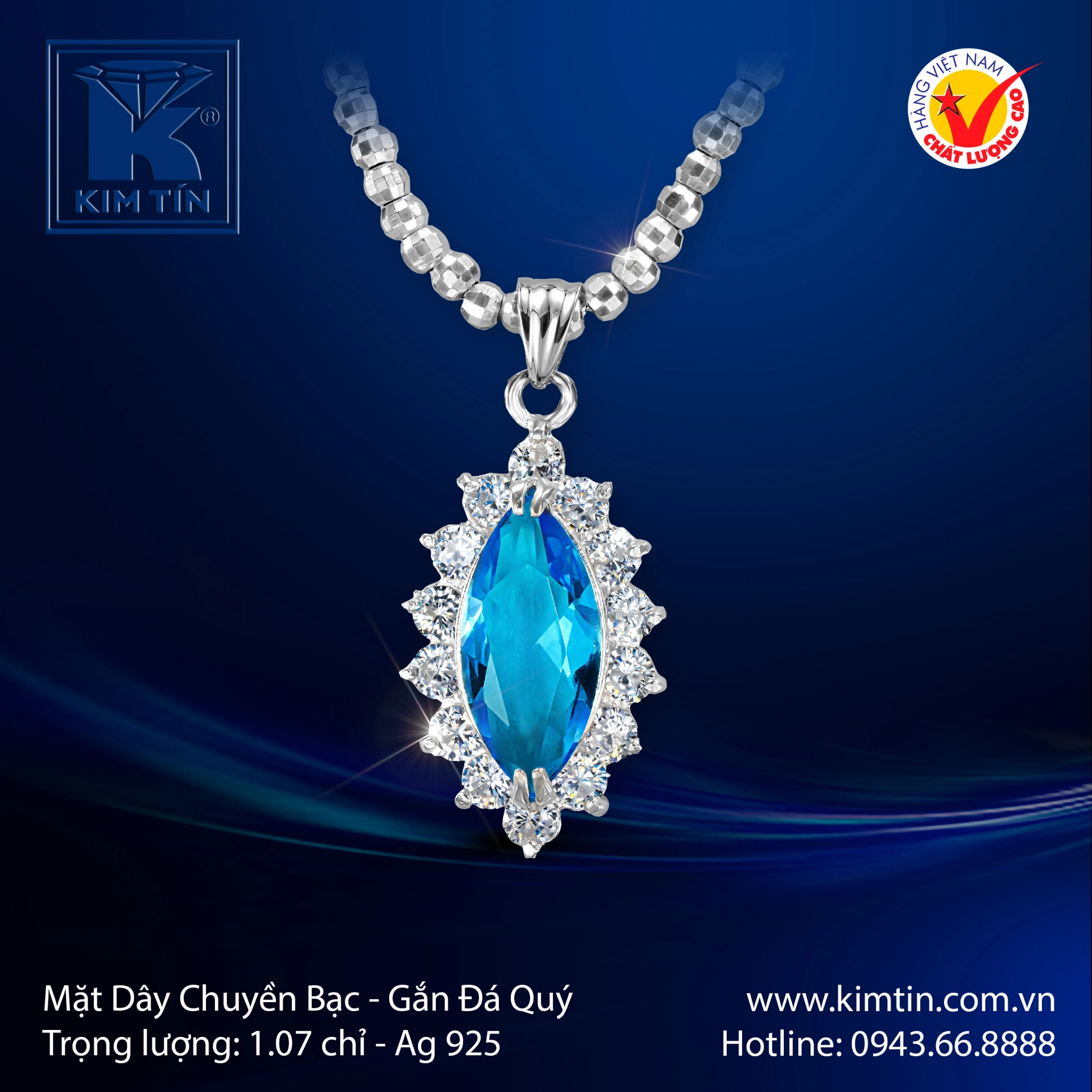 ✨ Mặt Dây Chuyền Bạc Đính Đá Xanh Biển – Tuyệt Tác Sang Trọng & Cuốn Hút ✨