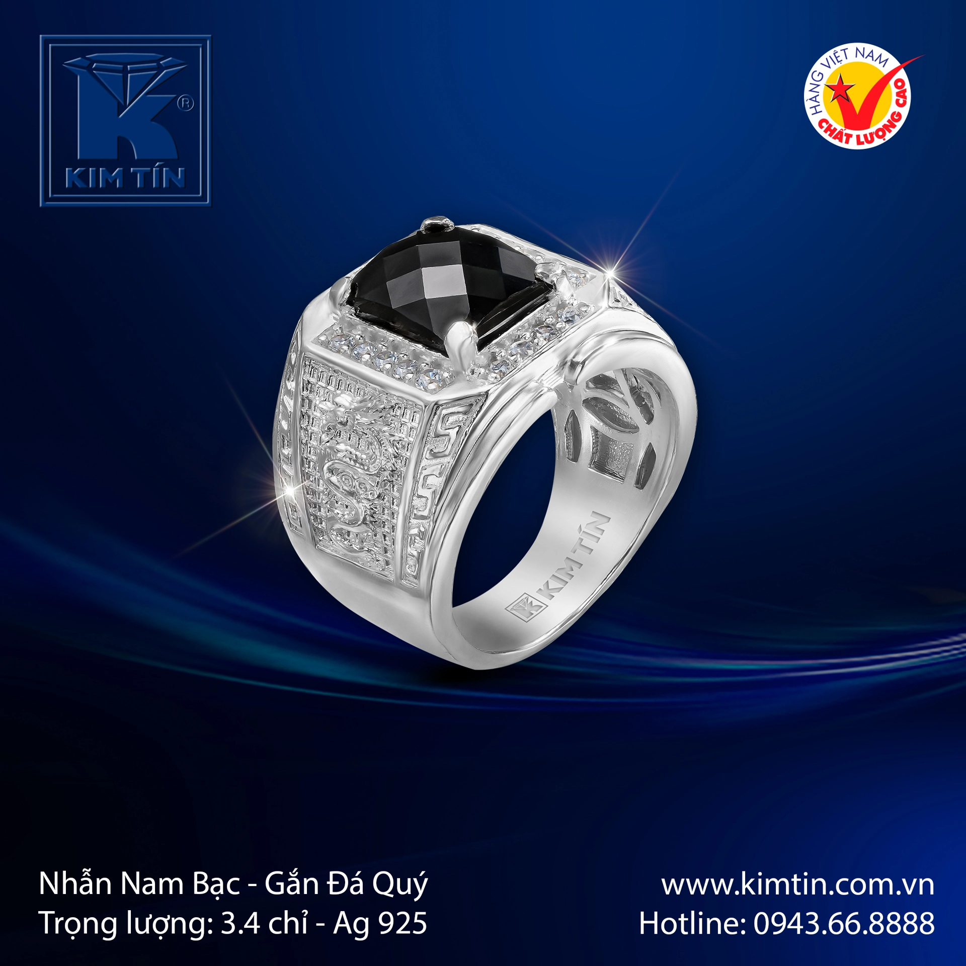 Một tuyệt tác dành cho quý ông yêu thích sự mạnh mẽ và bí ẩn, nhẫn nam bạc 925 được chế tác tinh xảo với điểm nhấn là viên đá quý đen sang trọng, cuốn hút.