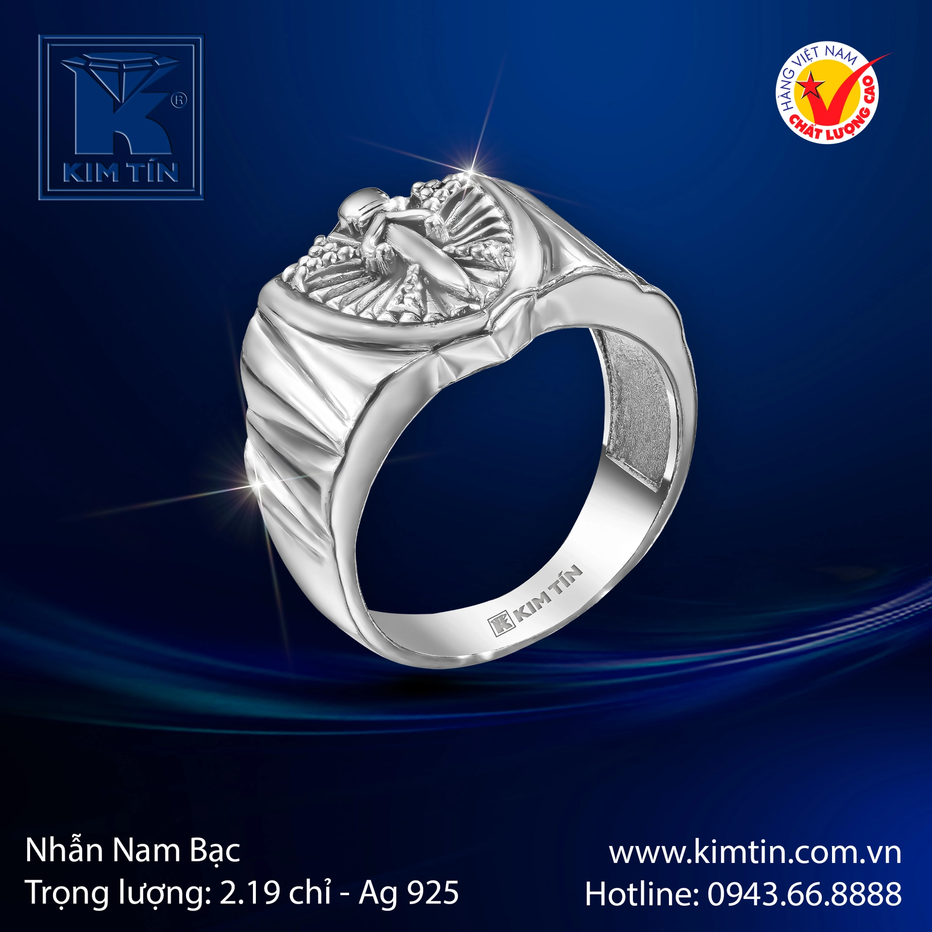 Chiếc nhẫn nam bạc 925 này được chế tác tinh xảo với trọng lượng 2.19 chỉ, mang thiết kế độc đáo, mạnh mẽ, thể hiện phong thái tự tin và cá tính của phái mạnh.