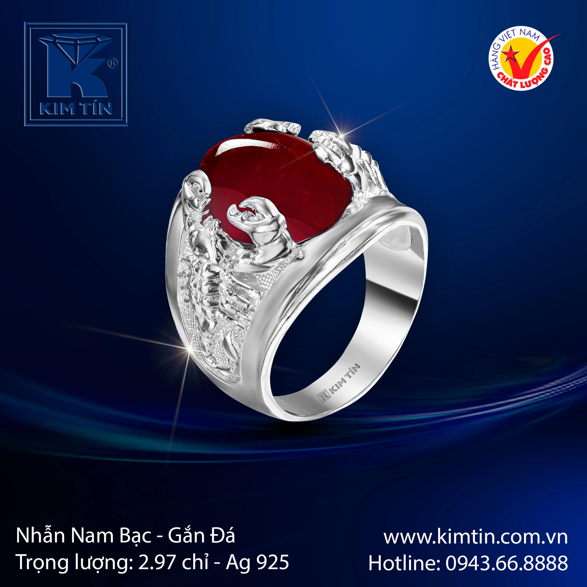 Chiếc nhẫn nam bạc 925 trọng lượng 2.97 chỉ mang phong cách mạnh mẽ, đầy khí chất. Thiết kế nổi bật với viên đá đỏ huyền bí được chế tác tinh xảo, kết hợp cùng họa tiết rồng uốn lượn hai bên thân nhẫn, tạo nên vẻ uy nghi và quyền uy cho người đeo.