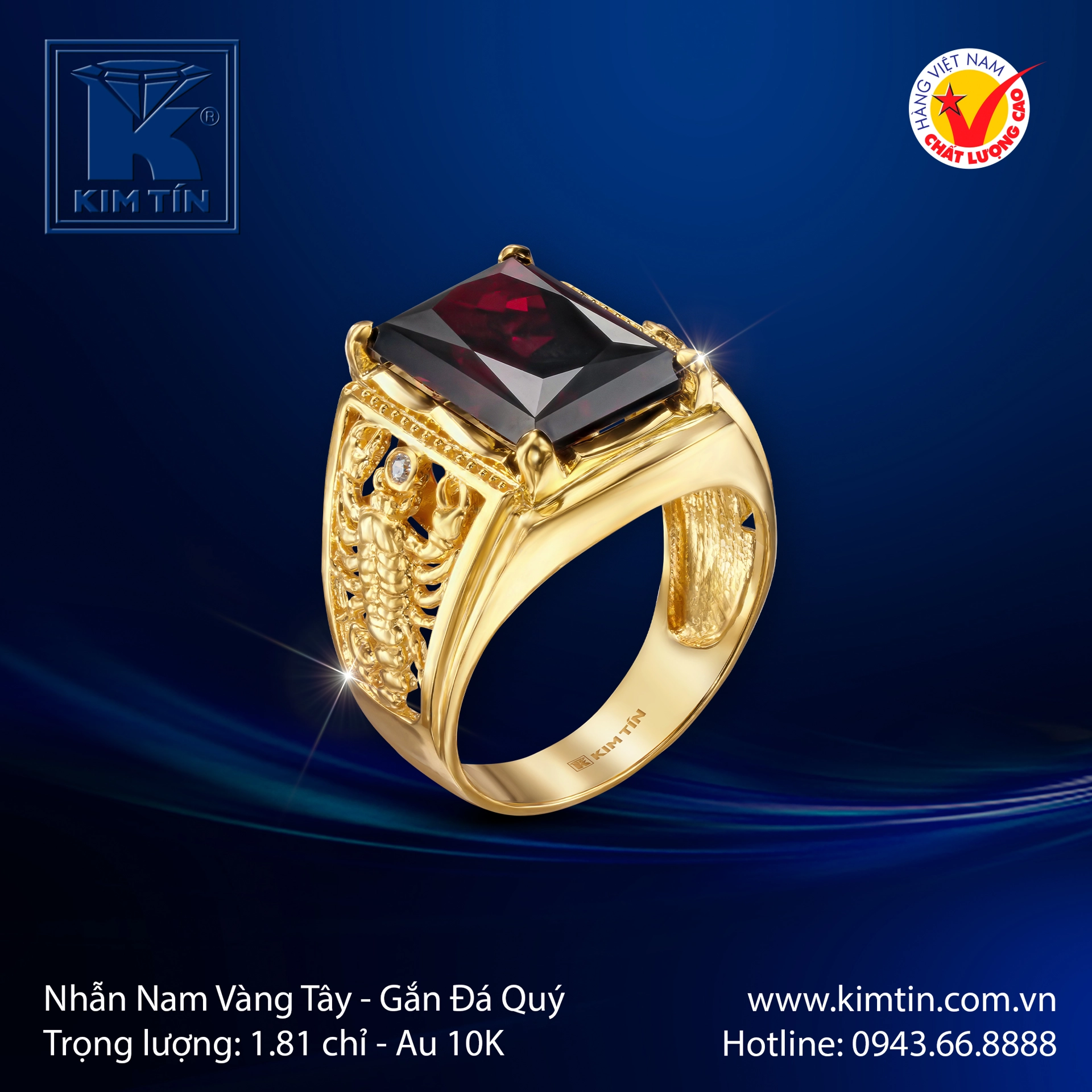 🦂 Một tuyệt tác trang sức mang phong thái đầy bí ẩn và mạnh mẽ, chiếc nhẫn là sự kết hợp táo bạo giữa biểu tượng quyền năng và kỹ nghệ chế tác thượng thừa. Tâm điểm là viên đá quý sắc đỏ thẫm huyền bí với giác cắt chữ nhật bề thế, toát lên vẻ sang trọng, chiều sâu và bản lĩnh của người đàn ông trưởng thành.