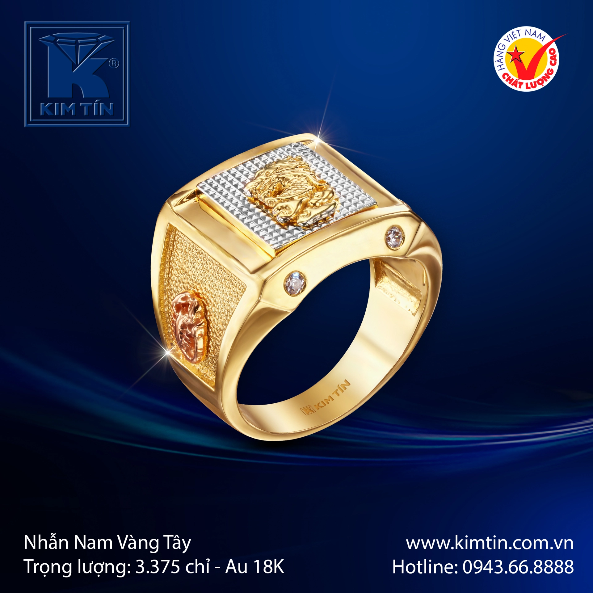 Biểu Tượng Quyền Năng: Trung tâm mặt nhẫn là hình tượng linh vật được chạm khắc tinh xảo trên nền họa tiết caro hiện đại, mang ý nghĩa phong thủy về sự thịnh vượng, may mắn và ý chí vươn cao. 🐉✨