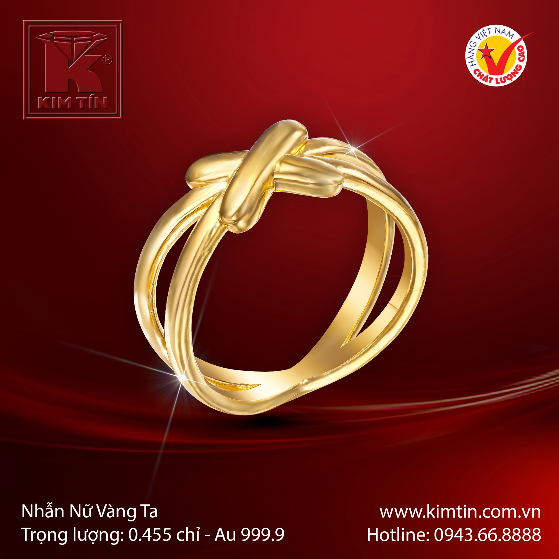 Với kỹ thuật chế tác bề mặt bóng loáng, chiếc nhẫn dễ dàng bắt sáng, tạo hiệu ứng lấp lánh tự nhiên trên bàn tay ngọc ngà của quý cô. Dáng nhẫn thanh mảnh nhưng có trọng lượng đáng kể (tham khảo 0.455 chỉ), mang lại cảm giác chắc chắn, cao cấp và thoải mái khi đeo. Thiết kế "Giao Kết Hoàng Kim" là sự lựa chọn hoàn hảo để đeo hàng ngày hoặc kết hợp cùng các trang sức khác, thể hiện sự tinh tế và đẳng cấp của phái đẹp.