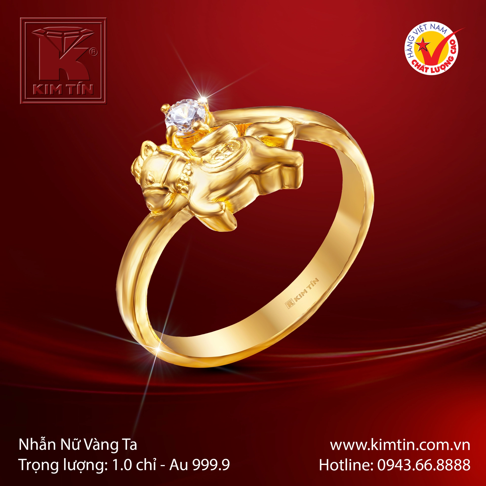 Trong dòng chảy của thời gian, vàng 24K (Vàng Ta 999.9) luôn giữ vững ngôi vị độc tôn, là biểu trưng cho sự thuần khiết tuyệt đối và giá trị vĩnh cửu. Tuyệt phẩm nhẫn nữ Linh Vật Ngựa từ Kim Tín không chỉ là một món trang sức xa xỉ, mà còn là biểu tượng của sự dũng mãnh, tự do và lời chúc thăng tiến rạng rỡ, dành riêng cho những quý cô bản lĩnh và khát khao chinh phục những đỉnh cao mới.