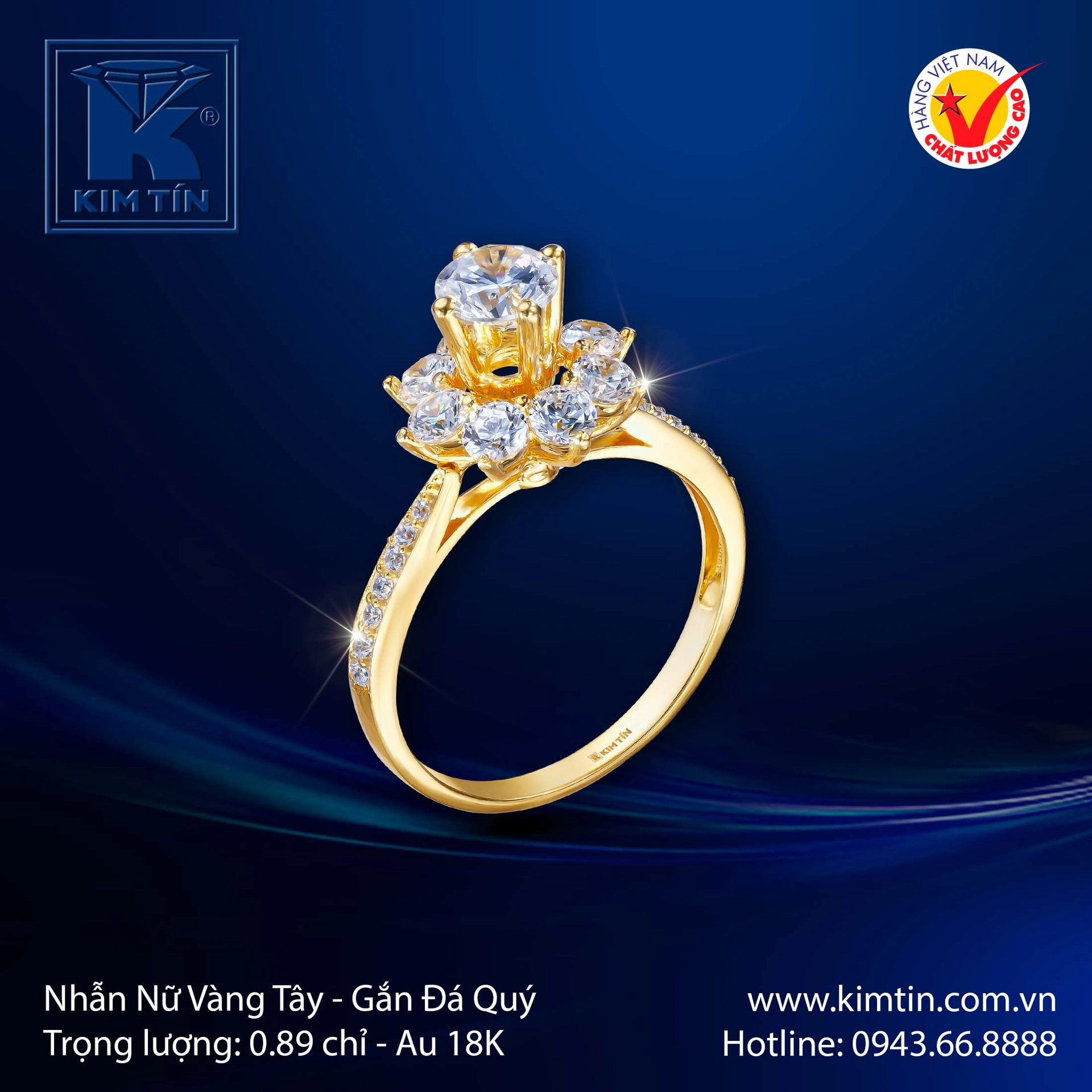 Nhẫn được chế tác từ Vàng Tây 18K (Au 750), nổi bật với sắc vàng kim ấm áp, sang trọng và độ bền lý tưởng. Với trọng lượng tham khảo 0.89 chỉ, chiếc nhẫn mang lại giá trị cao và vẻ ngoài quý phái.