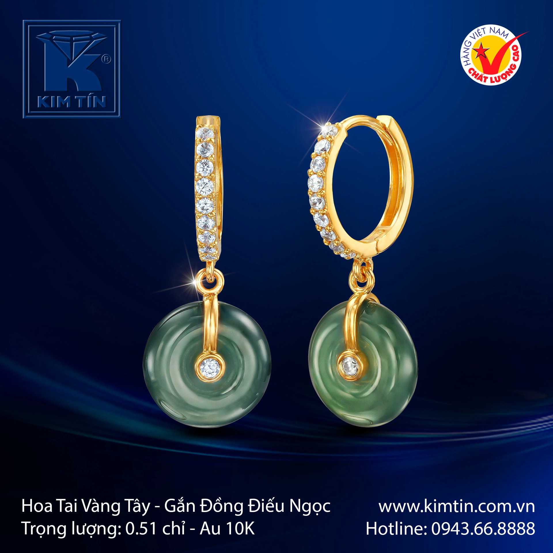 Như một bản hòa tấu tinh tế giữa ánh sáng hiện đại và nét duyên ngầm Á Đông, đôi hoa tai Vàng Tây 10K Đồng Điếu Ngọc là một kiệt tác trang sức, được sinh ra để tôn vinh vẻ đẹp thanh lịch và khí chất của người phụ nữ. Thiết kế là sự lựa chọn hoàn hảo cho quý cô yêu chuộng phong cách vừa sang trọng, thời thượng, vừa mang đậm ý nghĩa phong thủy tốt lành. 💚