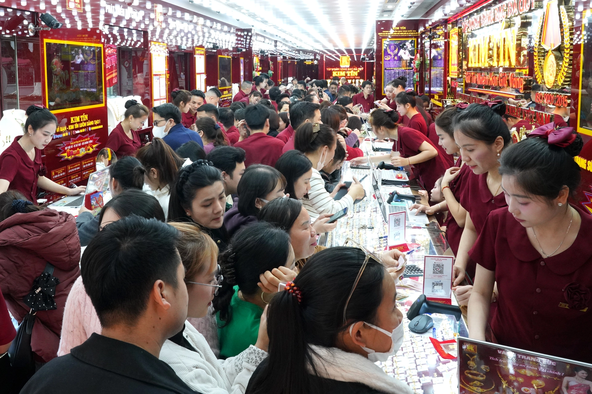 Tại hệ thống Tập đoàn Vàng Bạc Đá quý Kim Tín gần như phiên nào khách cũng đông, nhu cầu giao dịch lớn cả chiều mua vào và bán ra.