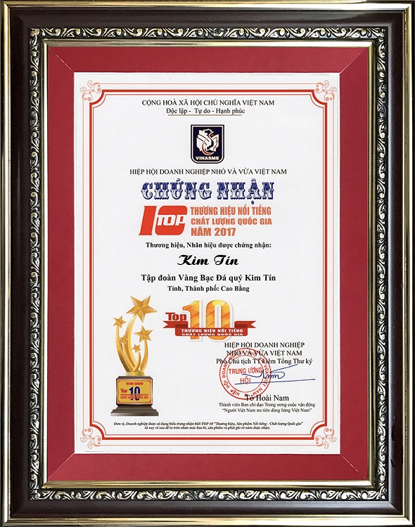 Trước khi tổ chức buổi lễ tôn vinh này, Ban tổ chức đã chọn lựa, sàng lọc kỹ càng từng hồ sơ tham dự của các doanh nghiệp. Sau đó chọn lựa ra 100 doanh nghiệp đạt xuất sắc các tiêu chí bình chọn để được trao Cúp ""Thương hiệu, sản phẩm Nổi Tiếng - Chất lượng Quốc Gia 2017"". Trong số 100 doanh nghiệp được vinh danh giải thưởng cao quý trên thì Tập đoàn Vàng Bạc Đá quý Kim Tín vinh dự lọt vào Top 10 doanh nghiệp xuất sắc nhất.