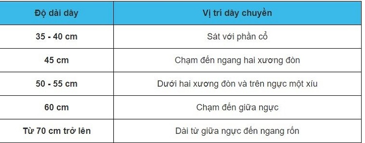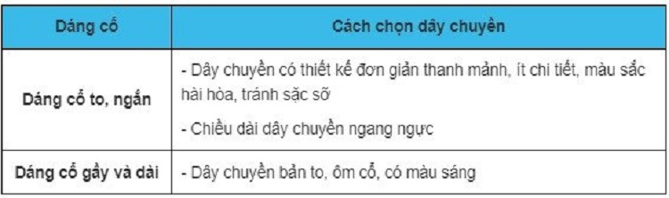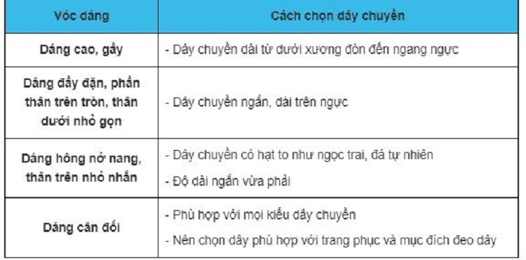 Bật mí cho bạn những loại dây chuyền theo dáng cổ trong bảng dưới đây nhé: