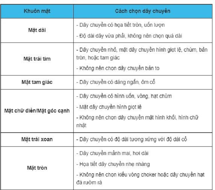 Dựa theo hình dáng khuôn mặt, bạn có thể chọn những mẫu dây chuyền phù hợp, để nổi bật những góc đẹp và che đi khuyết điểm khuôn mặt nhé!